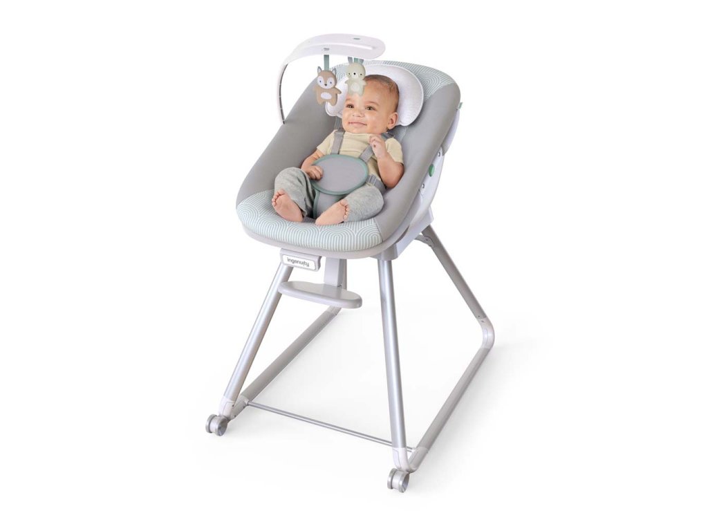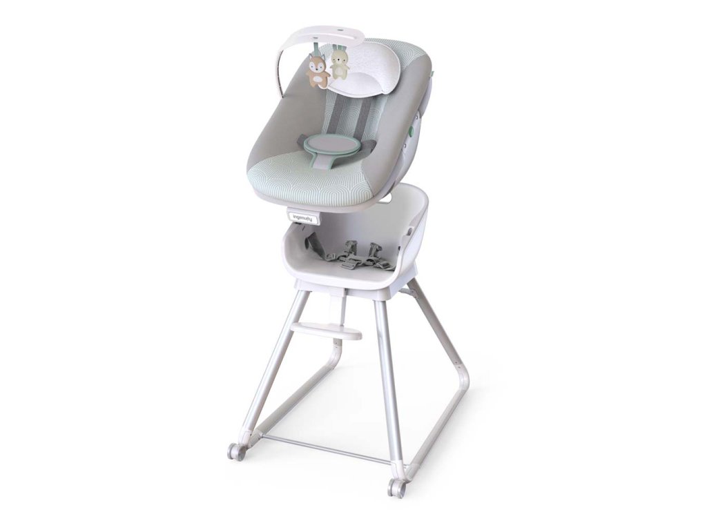 Nejuniverzálnější konvertibilní vysoká dětská stolička 6v1 od Ingenuity Vám dopřeje možnost, aby Vaše děťátko bylo při Vás od jeho prvního dne. Dětská židle Ingenuity Beanstalk ™ 6v1 nabízí 6 režimů na využití od narození až do 5 let. A to: dětské lehátko s hrazdičkou na hraní s jemnými vibracemi určené pro novorozence do 9 kg; vysoká stolička v plné velikosti s jídelním pultíkem; dětská jídelní židle, která umožňuje dítěti připojit se k rodině u stolu bez pultíku; polstrovaná židle s připojením na běžnou jídelní židli; stolička pro batole; a možnost rozdělit židli na 2 samostatné části a tím usadit dvě děti současně.Extra pohodlné polstrování sedáku vytváří útulné místo na krmení. Židle má dvě přední kolečka na jednodušší přesouvání a snadno se s ní manévruje i jednou rukou. Jídelní pultík je odnímatelný a sedací část můžete nastavit do 3 různých poloh pro ten nejvhodnější sklon, aby bylo děťátko v bezpečí a pohodlí. Nastavitelné 5 -bodové bezpečnostní pásy udrží dítě v židli při každém režimu. Režim dětského lehátka je vybaven hrazdičkou s hračkami a zklidňujícími vibracemi, které zabaví dítě, zatímco vy můžete vařit. Jak dítě roste, opěrka nohou se přizpůsobuje výšce dítěte v různých výškových nastaveních.