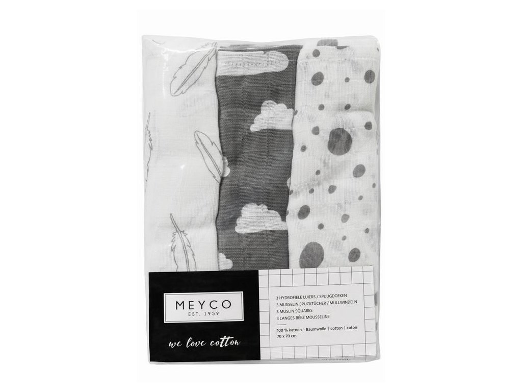 Plenky 3-balení Feathers-clouds-dots grey/white