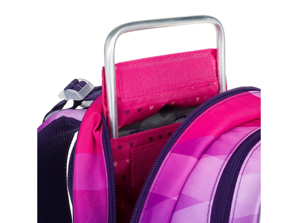 Batoh má dvě hlavní objemné komory. Zadní komora batohu je užší než přední, radíme do ní dát nejtěžší učivo a směrem dopředu odlehčovat. V přední komoře je umístěna síťová kapsa na zip a jmenovka.