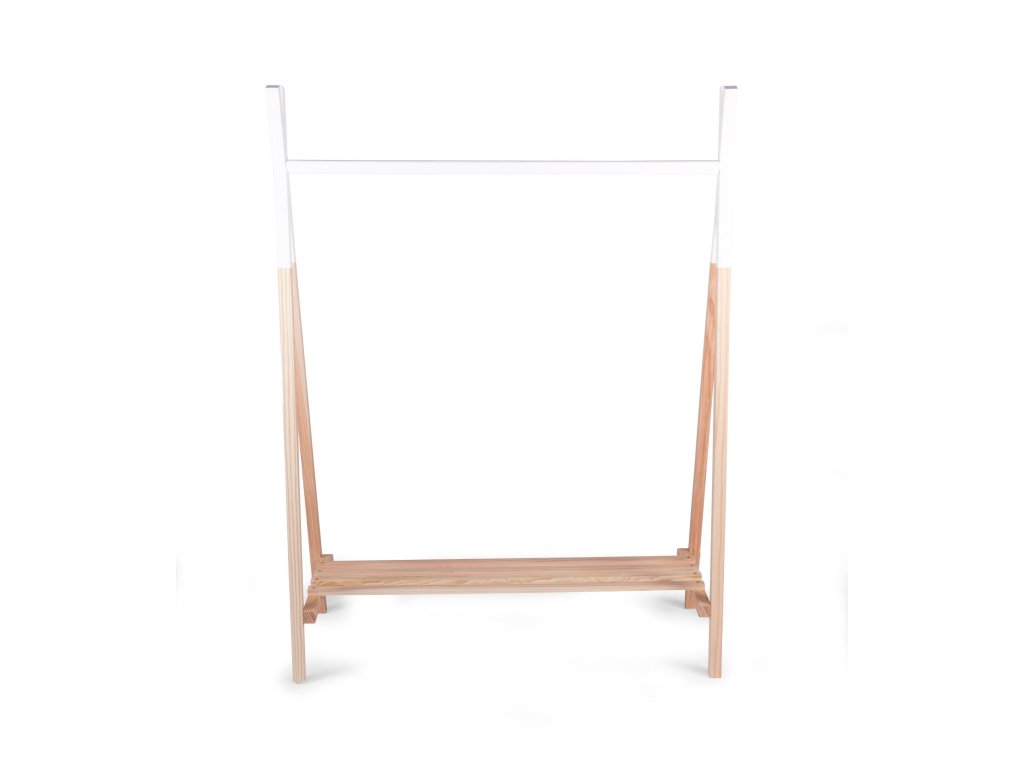 NA OBJEDNÁVKU S DODANÍM 4-6 TÝDNŮ Dřevěný stojan na oblečení Tipi je ideální pro rychlé a pohodlné ukládání oblečení vašeho dítěte. Stojan má ve spodní části polici a nahoře závěsnou tyč. Rozměry: 107 x 48 x 137 cm Materiál: bukDoplňkové parametry