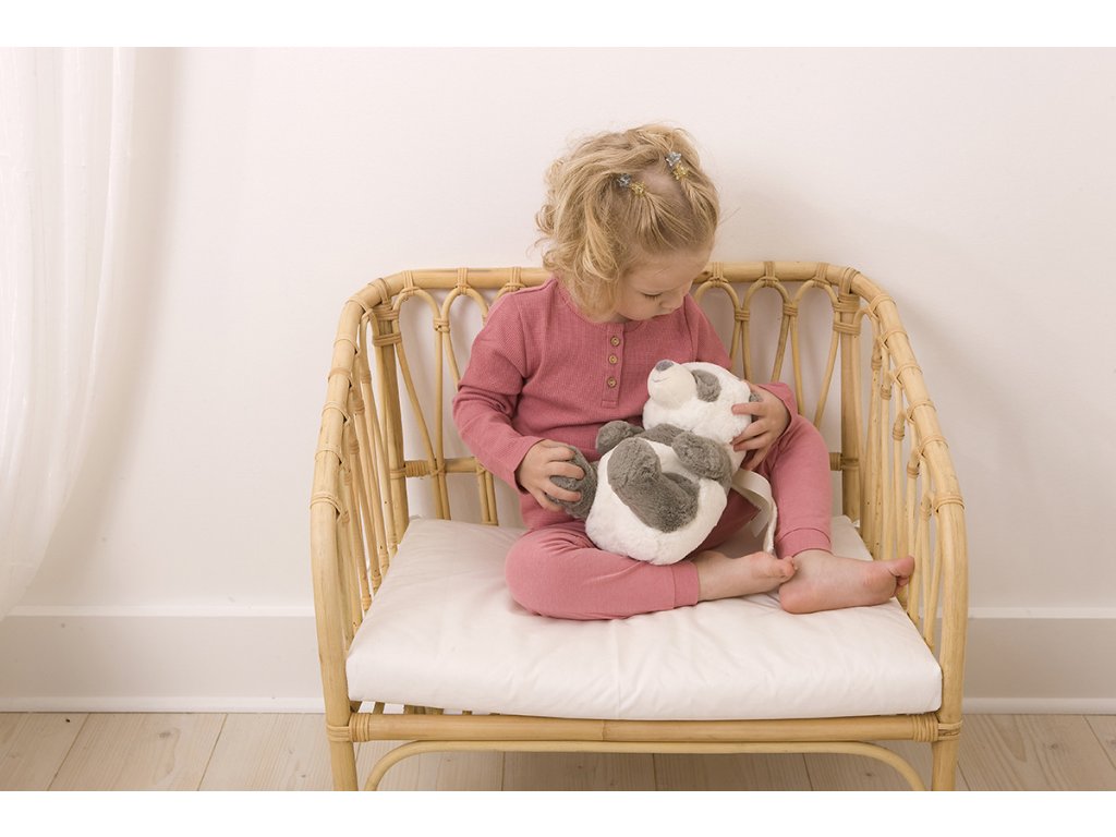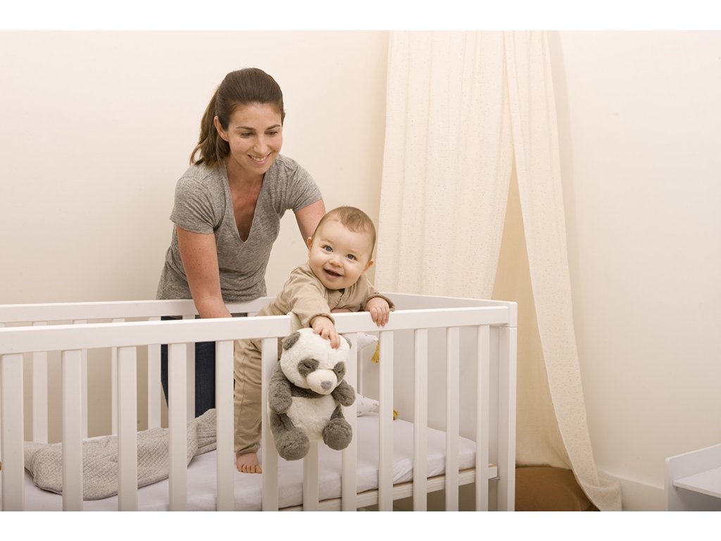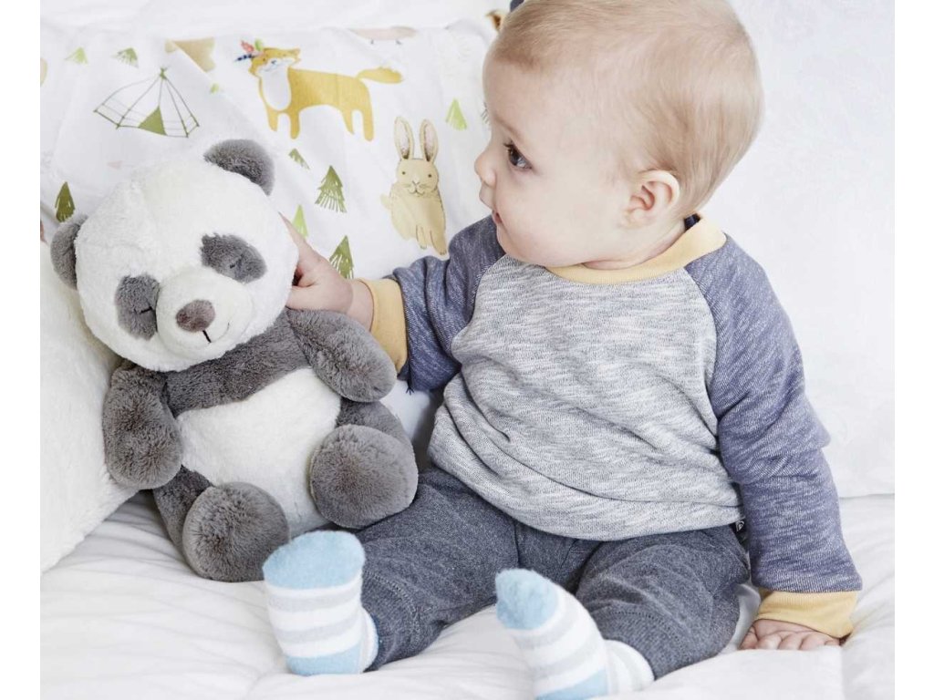 Usínáček v podobě neodolatelného plyšového medvídka pandy s hudbou a relaxačními zvuky pomůže vašemu dítěti uklidnit se a snáze usnout. Hračka nabízí 4 melodie a 4 uklidňující přírodní zvuky (déšť, tlukot srdce, vlny, velrybí píseň). Inteligentní senzor zvuku s nastavitelnou citlivostí aktivuje přehrávání melodie, když dítě začne plakat. Hudební box nabízí možnost nastavení hlasitosti a automatického vypnutí po 23 nebo 45 minutách. Usínáčka můžete snadno zavěsit na postýlku dítěte, postavit na noční stolek či položit do postýlky. Vyjímatelný hudební box se světlem je možné používat i samostatně mimo hračku pandy. Hračku je možné po vyjmutí hudební boxu prát v pračce. Baterie 2xAA jsou součástí balení. Rozměry: 26 x 16 x 10 cm Vhodné pro děti od narození.Doplňkové parametry