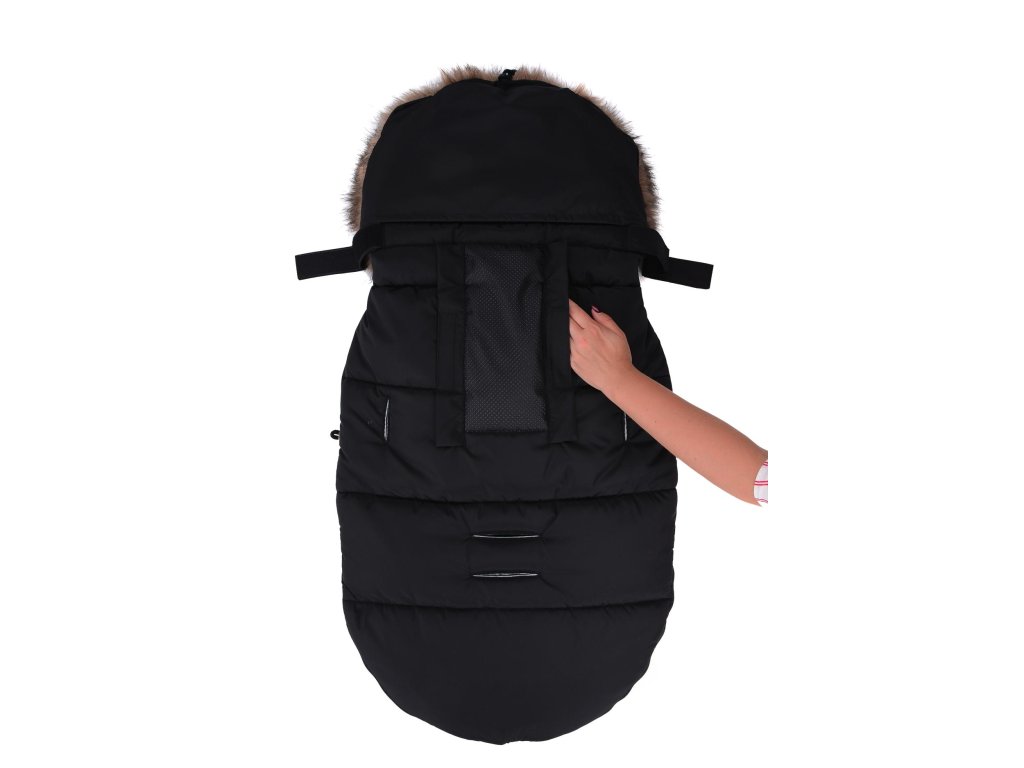 - Univerzální otvory na zadní části fusaku pro 5ti bodové pásy umožní pevné a bezpečné upevnění polohy fusaku v kočárku.