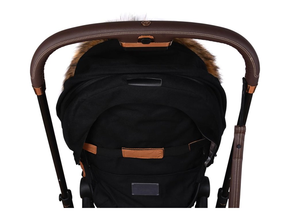 - K zamezení pohybu fusaku v kočárku přispívá látkový popruh v zadní části, kterým zajistíte fusak zachycením přes opěradlo.