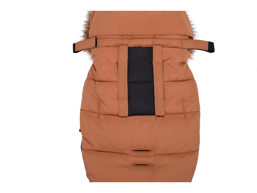 - Univerzální otvory na zadní části fusaku pro 5ti bodové pásy umožní pevné a bezpečné upevnění polohy fusaku v kočárku.